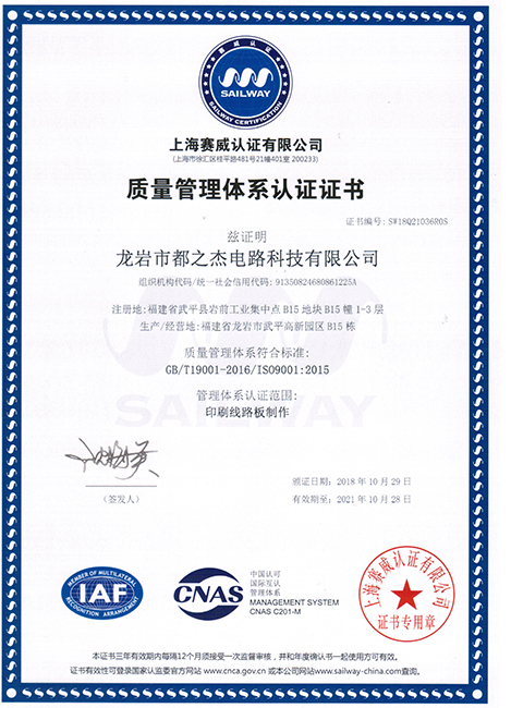 自1997年成立以來(lái),都之杰已經(jīng)獲得ROHS產(chǎn)品認(rèn)證,各項(xiàng)技術(shù)指標(biāo)達(dá)到國(guó)家先進(jìn)水平,質(zhì)量和信譽(yù)是企業(yè)的生命,我們一直以來(lái)持續(xù)不斷改善產(chǎn)品的質(zhì)量,以質(zhì)量取勝市場(chǎng),提高公司的信譽(yù)度。多年來(lái)憑優(yōu)良的產(chǎn)品質(zhì)量、準(zhǔn)時(shí)快捷的供貨和周到細(xì)致的服務(wù),深得國(guó)內(nèi)外客戶(hù)的好評(píng)。我們已經(jīng)獲得良好的聲譽(yù)和客戶(hù)的信任,并逐漸成為客戶(hù)可信賴(lài)的、能長(zhǎng)期合作的印刷線(xiàn)路板戰(zhàn)略合作供應(yīng)商。我們堅(jiān)持向國(guó)內(nèi)外先進(jìn)企業(yè)學(xué)習(xí)并不斷提升自主創(chuàng)新。公司擁有經(jīng)驗(yàn)豐富及穩(wěn)定的團(tuán)隊(duì),視質(zhì)量為企業(yè)生命,嚴(yán)格推行ISO9001質(zhì)量管理體系,符合ROHS標(biāo)準(zhǔn),并獲得了UL安全認(rèn)證、TS16949和CQC認(rèn)證。